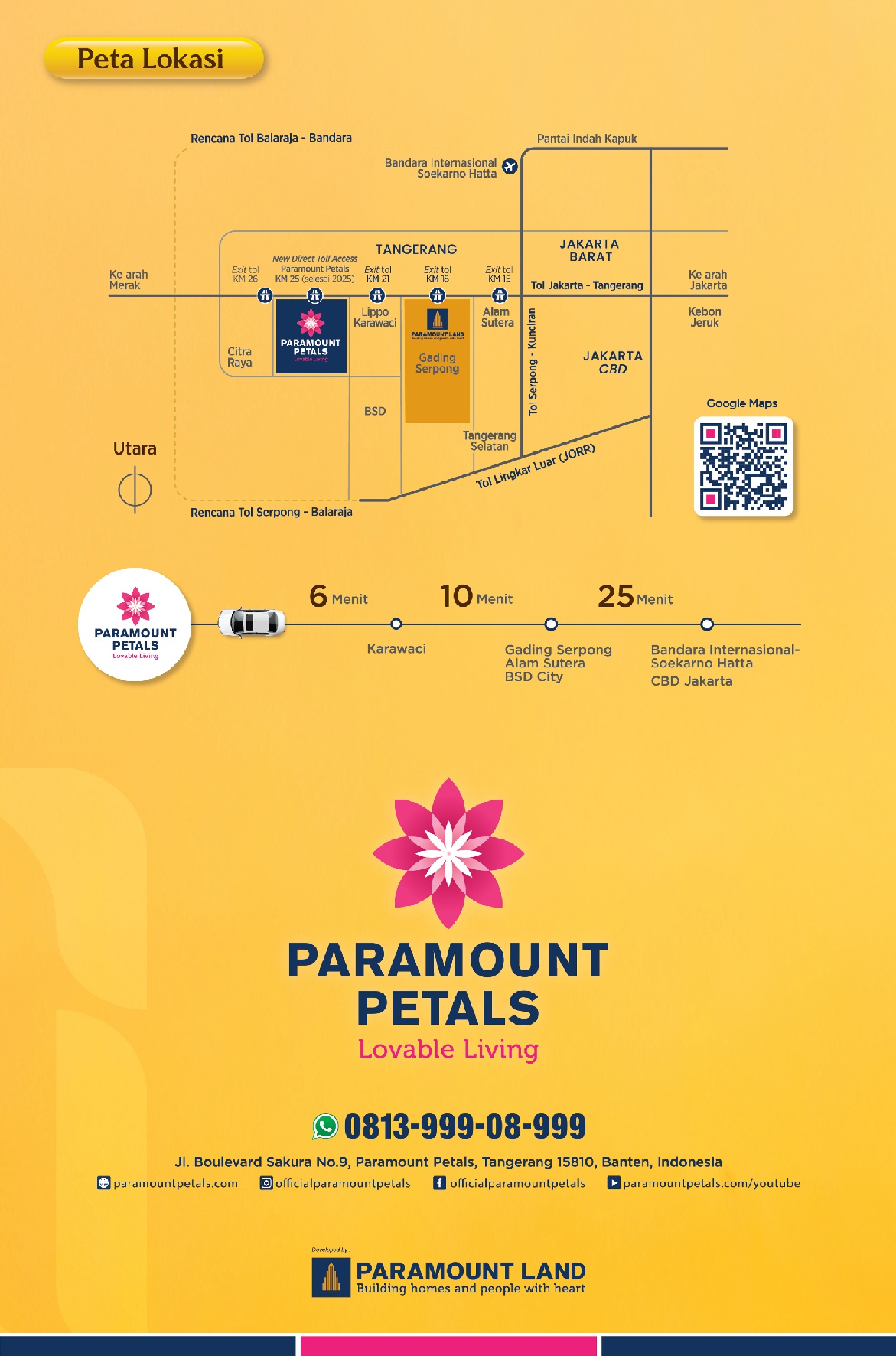 Terletak di jalan Boulevard Sakura, koridor utama dengan aktivitas warga yang terus meningkat, Indica Grande dikelilingi cluster hunian aktif seperti Aster, Canna, Gardenia, dan Lily. Juga keberadaan banyak tenant yang mulai beroperasi, termasuk Kampung Kecil, menunjukkan daya tarik pasar yang terus berkembang. Pembangunan direct toll access menuju Paramount Petals yang ditargetkan selesai akhir 2025 tentu akan menambah nilai strategis area ini.