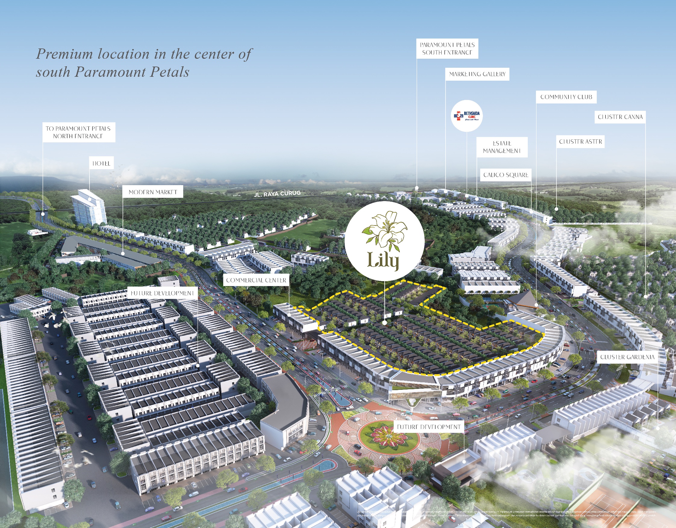 Lily merupakan cluster keempat di kawasan Kota Mandiri Baru Paramount Petals seluas ±400Ha, tepatnya berada di area South Paramount Petals yang juga dekat dengan Community Club.
